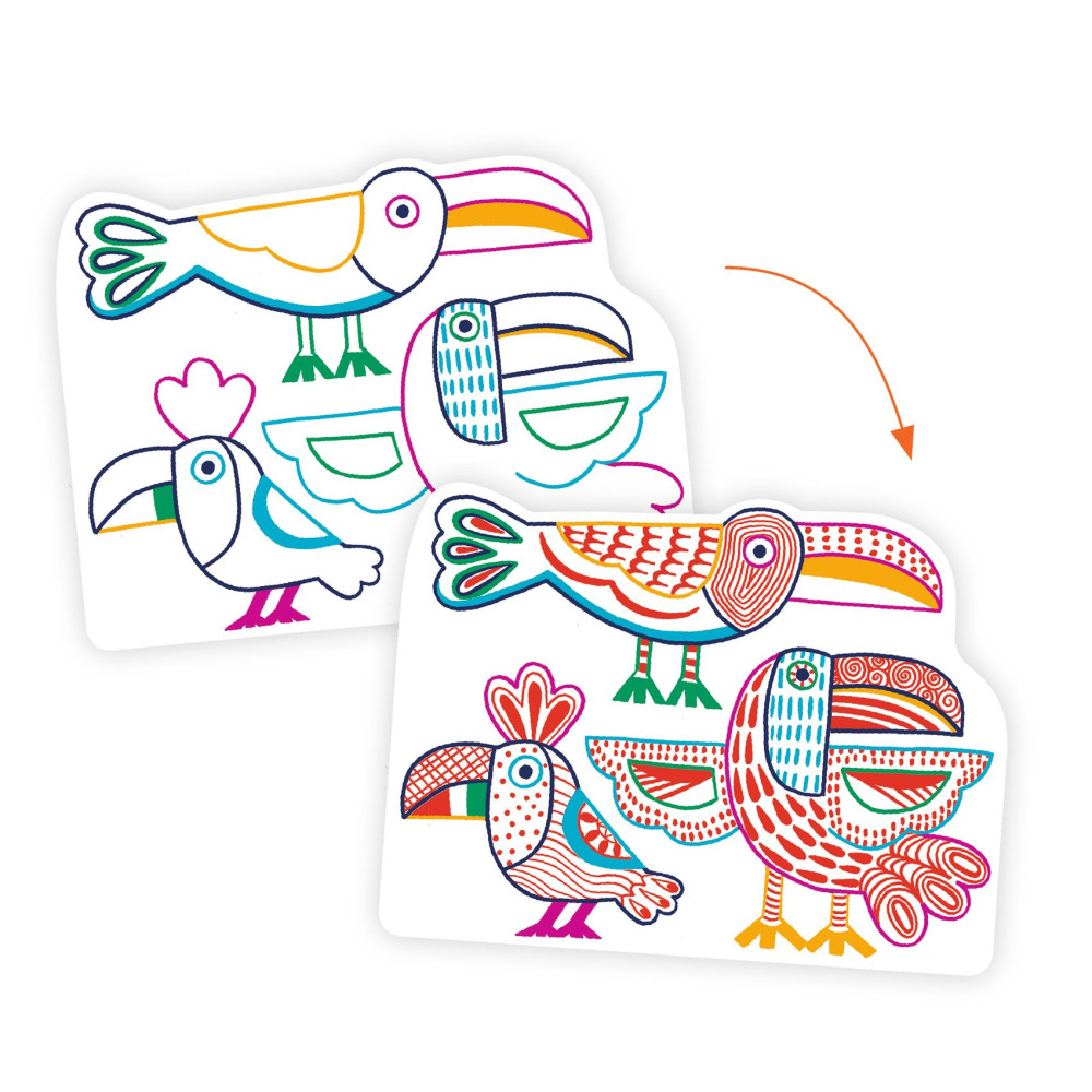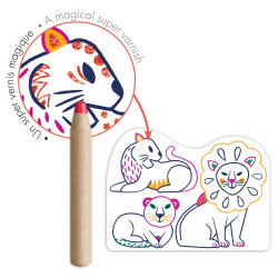 Rodinky z divočinyKúzelné omaľovánky, kde sa vzory objavia až pri vyfarbovaní Magické vyfarbovanie farbičkou Rodinky z divočiny od značky Djeco je tvorivá sada pre malé deti, ktoré rady čmárajú a vyfarbujú – a milujú prekvapenia. Na prvý pohľad jednoduché obrázky zvieracích rodiniek sa pri vyfarbovaní zmenia: farbička označí len vybrané miesta a postupne tak odhalí skryté vzory, detaily a línie.Deti môžu vyfarbovať voľne, bez stresu z presnosti – výsledok aj tak vyzerá pekne. Hrubá farbička je prispôsobená malým ručičkám a karty sú uložené v praktickom prenosnom obale, takže sada je ideálna aj na cesty. Tvorenie prirodzene podporuje jemnú motoriku, sústredenie a radosť z dokončenia obrázka. Obsah balenia 12 obrázkov/kariet na magické vyfarbovanie 1 hrubá farbička prenosné puzdro/vrecko na uloženie Prečo si ju deti obľúbia magický efekt – pri vyfarbovaní sa objavia skryté vzory jednoduché a vďačné tvorenie aj pre menšie deti praktické balenie vhodné na cesty rozvíja motoriku a trpezlivosť Odporúčaný vek 3–6 rokov