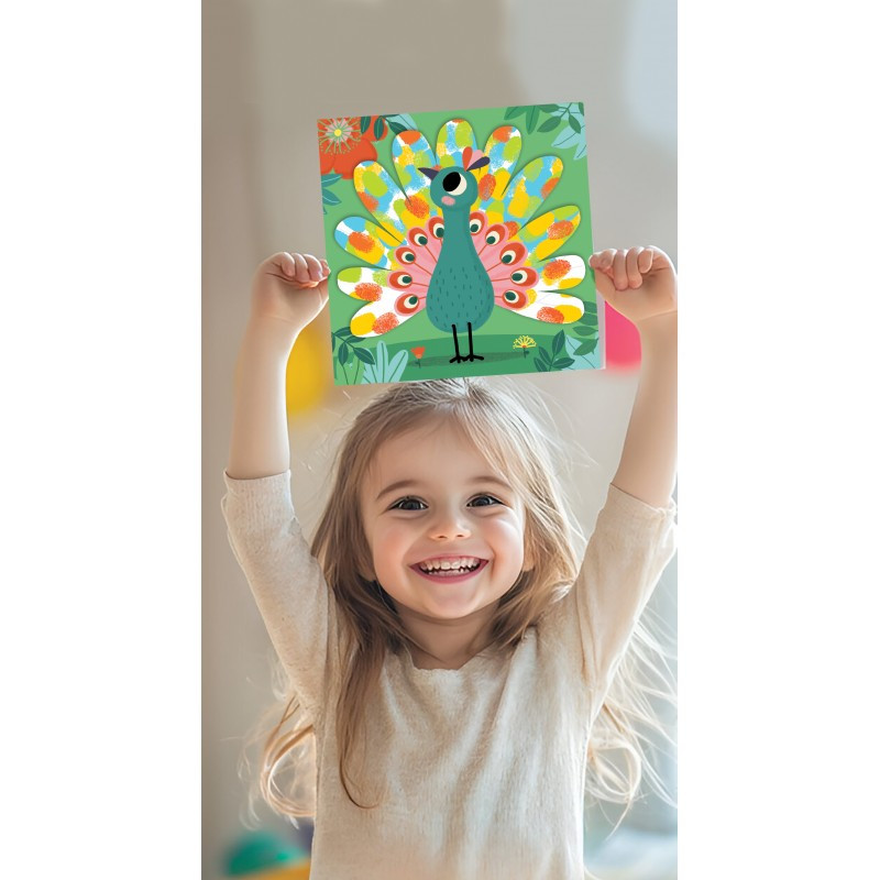 Kreatívna sada pre deti Maľovanie prstovými farbami Zvieratká od francúzskej značky Crea Lign z radu Jednoduché obrázky je vhodné už pre deti od 3 rokov. Obsahuje 6 obrázkov zvieratiek na vymaľovanie a paletu so 4 farebnými poduškami na odtlačky prstov. Vďaka nim si deti rozkošné lesné zvieratká krásne vyfarbia len za pomoci svojich odtlačkov prstov. Nechýba ani 1 hubka na následné vystavenie obrázkov a 1 handrička na utieranie prstov.