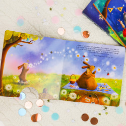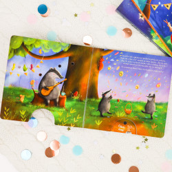 Dedo Jazvec hrá na gitare svoju obľúbenú pieseň, aby potešil vnúčatá. Deti veselo tancujú do rytmu a tešia sa z padajúcich konfiet. A mamička Líška? Rozžiari hviezdy na oblohe pre svoju malú Líštičku. Má ju veľmi rada!