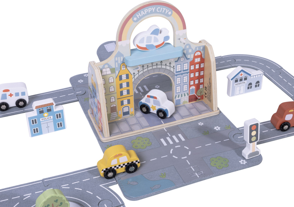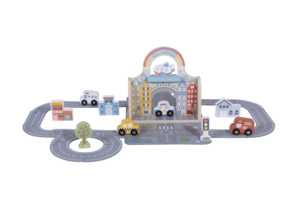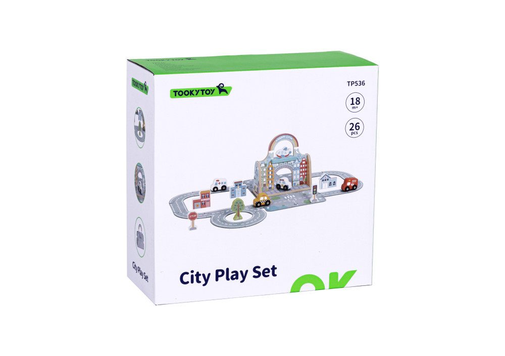 Mesto sada v kufríku s dráhouCestovná súprava na hranie pre malých milovníkov ciest a dobrodružstievObjavte svet plný ciest, značiek, áut a rušného mestského života – všetko ukryté v jednom praktickom kufríku! Mesto sada v kufríku s dráhou od Tooky Toy je ideálna hračka pre deti, ktoré milujú autíčka, vlaky a dobrodružstvá. Po otvorení kufríka sa pred nimi rozloží farebné mesto s cestami, domčekmi, stromami a dopravnými prostriedkami, ktoré čaká len na to, aby ožilo detskou fantáziou.Malé mesto, veľké dobrodružstváfarebná dráha s autíčkami, stromami, domčekmi a dopravnými značkamivšetko sa jednoducho uloží späť do kufríka – hra bez neporiadkurozvíja jemnú motoriku, koordináciu ruka–oko a logické mysleniepodporuje tvorivosť, plánovanie a priestorové vnímaniekvalitné drevené prevedenie s hladkými hranami a netoxickými farbamiideálne na hranie doma aj na cestách pre deti od 3 rokov