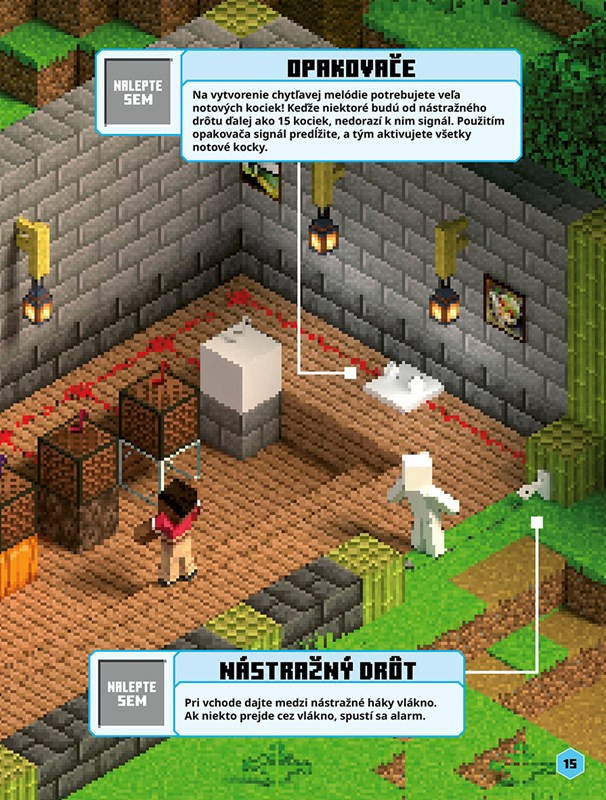 Minecraft Redstone Kniha samolepiek Viac ako 300 samolepiek pre staviteľov redstonových zázrakovPriprav si samolepky a vydaj sa na poriadne nabité dobrodružstvo v Minecrafte! Táto oficiálna samolepková kniha od nakladateľstva Alicanto ťa prevedie fascinujúcim svetom najsilnejšieho materiálu v Minecrafte. Postav automatizovanú železnicu hlboko pod zemou, vymysli pasce na oklamanie nepriateľských mobov a nakoniec osláv svoje majstrovské diela špeciálnym ohňostrojom – to všetko pomocou viac ako 300 farebných samolepiek. Kniha je ideálnym pomocníkom pre všetkých fanúšikov Minecraftu, ktorí chcú svoju kreativitu posunúť na vyššiu úroveň a pritom sa baviť aj mimo obrazovky.