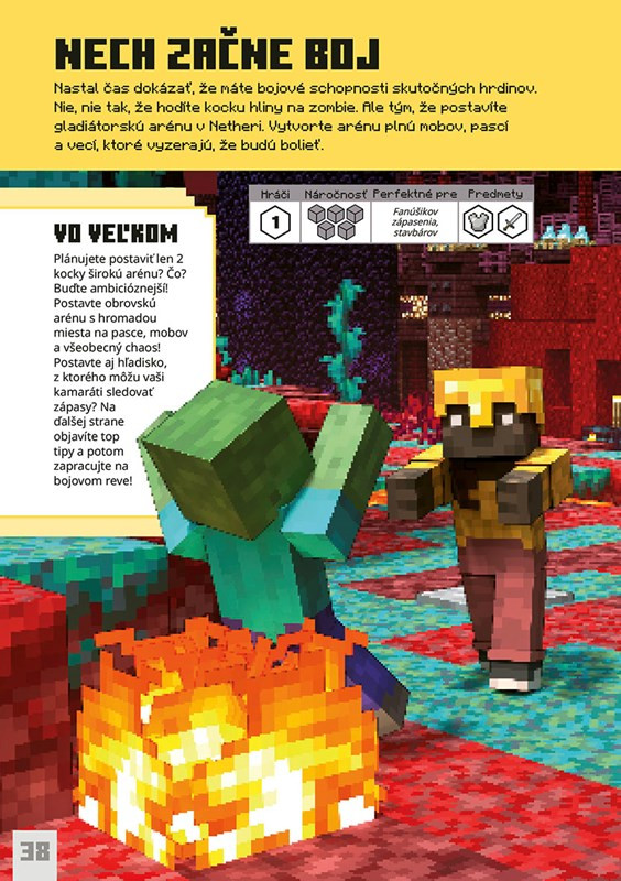 Minecraft Výzvy na prežitie Hrdinská edícia Preukáž hrdinstvo v Overworlde: viac ako 30 výziev pre skutočných Minecraft majstrovOficiálna kniha od nakladateľstva Alicanto prináša novú sériu výziev pre všetkých, ktorí chcú posunúť svoje schopnosti v Minecrafte na vyššiu úroveň. Hrdinská edícia je druhý diel série Výzvy na prežitie — plná náročných úloh, expertných tipov a úchvatných ilustrácií, ktoré ťa prevedú svetom Minecraftu od prvej strany až po poslednú. Výzvy môžeš plniť sám alebo s kamarátmi.