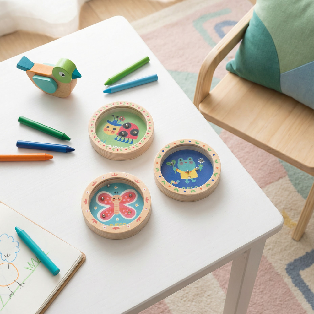 Mini hra na šikovnosť Príroda je malá drevená hra, ktorá deti zabaví doma aj na cestách.Úlohou je nakláňať a otáčať drevený krúžok tak, aby sa guličky presunuli do otvorov na obrázku.Deti si prirodzene trénujú šikovnosť, koordináciu oko–ruka a koncentráciu – a vďaka kompaktnému formátu sa hra zmestí do kabelky či batohu.Obsah balenia 1× mini drevená hra s guličkami (okrúhly formát). Rýchly prehľad odporúčaný vek: od 4 rokov typ hry: sólo hra (trpezlivosť/šikovnosť) materiál: FSC certifikované drevo veľkosť: priemer približne 9 cm assorti motív: dostaneš 1 kus s náhodnou ilustráciou