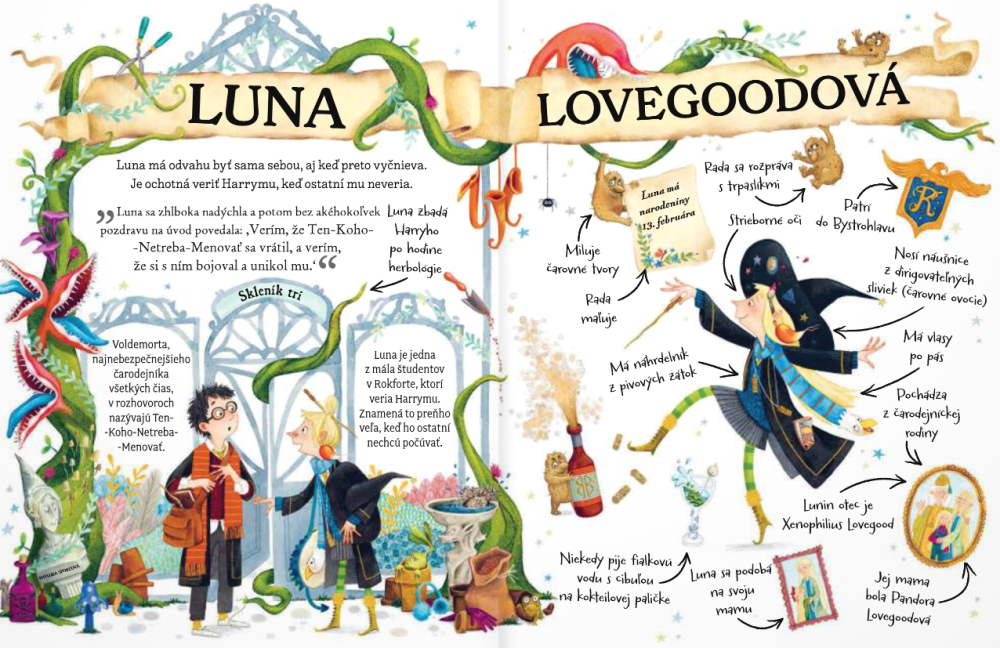 Vstúp do magického sveta čarodejníkov a objav jeho tajomstvá spolu s jednou z najnezvyčajnejších postáv – Lunou Lovegoodovou. Ako sa Luna zoznámila s Harrym Potterom a jeho priateľmi? Prečo nosí prízrakohľady, čo sú krčorohé chrapogoty a akú podobu má jej patronus? Mini potterovky – Luna Lovegoodová sú súčasťou novej zberateľskej série ilustrovaných knižiek, ktoré hravou a zábavnou formou približujú svet mágie začínajúcim čitateľom. Dôležité informácie o čarodejníckom svete sú podané s humorom, fantáziou a doplnené krásnymi ilustráciami od svetovo uznávaných ilustrátorov.Séria Mini potterovky bola vytvorená s cieľom priviesť k čítaniu novú generáciu detí a zároveň predstaviť obľúbené postavy z populárnej série o Harrym Potterovi. Verných fanúšikov poteší ako zberateľský kúsok, ktorý rozšíri ich knižnicu o ďalší čarovný titul.