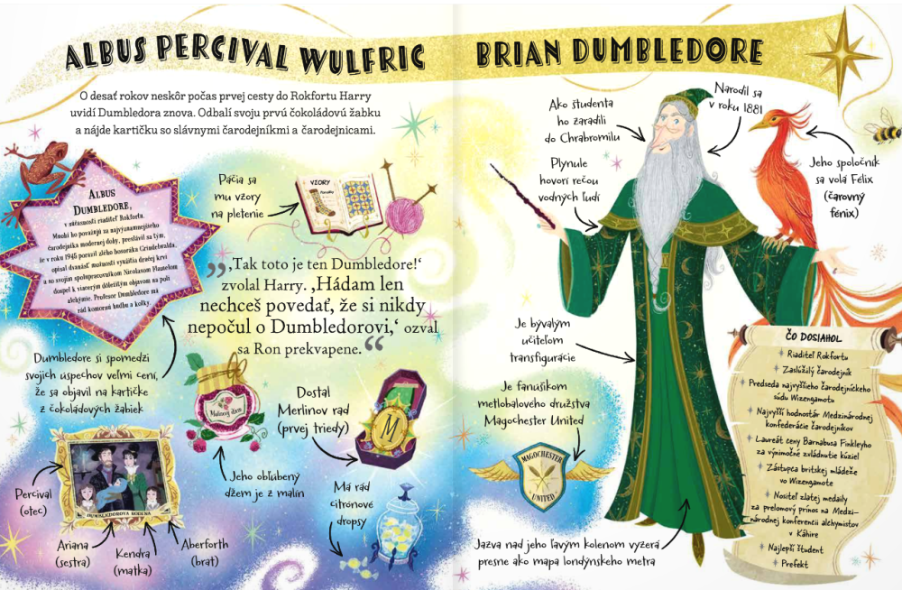 Prečo je profesor Dumbledore taký obľúbený riaditeľ? Čo sa o ňom píše na kartičke z čokoládových žabiek? Ktorý metlobalový tím má najradšej? Nová zberateľská séria ilustrovaných knižiek, ktoré začínajúcim čitateľom predstavia svet mágie a obľúbené postavy z populárnej série o Harrym Potterovi. Všetky dôležité informácie sú podané s humorom a fantáziou, pričom život im vdýchli svetovo uznávaní ilustrátori. Séria knižiek s názvom Mini potterovky bola navrhnutá tak, aby priviedla k čítaniu novú generáciu mladých čitateľov a zoznámila ich s jedinečným svetom čarodejníkov. Verných fanúšikov populárneho čarodejníka s jazvou v tvare blesku na čele zas poteší a rozšíri ich knižnú zbierku.