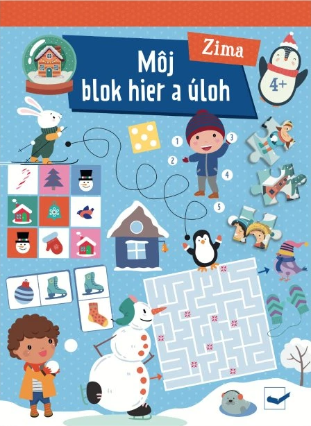 Môj blok hier a úloh Zima 4+Máte radi zimu? Tak rýchlo otvorte tento blok hier pre štvorročné deti!Kniha aktivít pre štvorročné deti plná spájačiek, doplňovačiek, hľadania rozdielov a ďalších aktivít so zimnými zvieratami a zasneženou krajinou. V tejto knihe aktivít nájdete mnoho rozmanitých hravých úloh, vďaka ktorým si vaše deti osvoja správne držanie ceruzky, precvičia jemnú motoriku a logické uvažovanie. Vnútri na nich čakajú hravé úlohy plné snehuliakov a veselých zvieratiek. Budú prechádzať bludisko, hľadať rozdiely, spájať, dopĺňať a vyfarbovať. Na druhej strane každej úlohy nájdete riešenie. Ideálne na dlhé zimné večery.