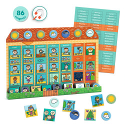 Môj týždeň – edukačná hra plánovania týždenných aktivít je zábavná a užitočná hra, ktorá učí deti plánovať a organizovať svoj týždeň. Pomocou farebne ilustrovaných kariet s rôznymi úlohami, aktivitami a udalosťami si deti dokážu zostaviť svoj týždenný plán hravou formou.Prečo si vybrať hru od Djeco- vhodná pre deti od 4 rokov, rozvíja plánovanie, organizáciu a zodpovednosť, jednoduché pravidlá a jasné symboly, učí rozlišovať dni v týždni a bežné aktivity, vhodná do školy aj na doma. Čo rozvíja u detí- organizáciu času a plánovanie, logické myslenie a rozhodovanie, pamäť a sústredenie, schopnosť naplánovať si aktivity, slovnú zásobu a riekanky týkajúce sa dní. Obsah balenia- obrovská magnetická tabuľa s domčekom, 86 magnetov, predrezaný hárok nálepiek, návod