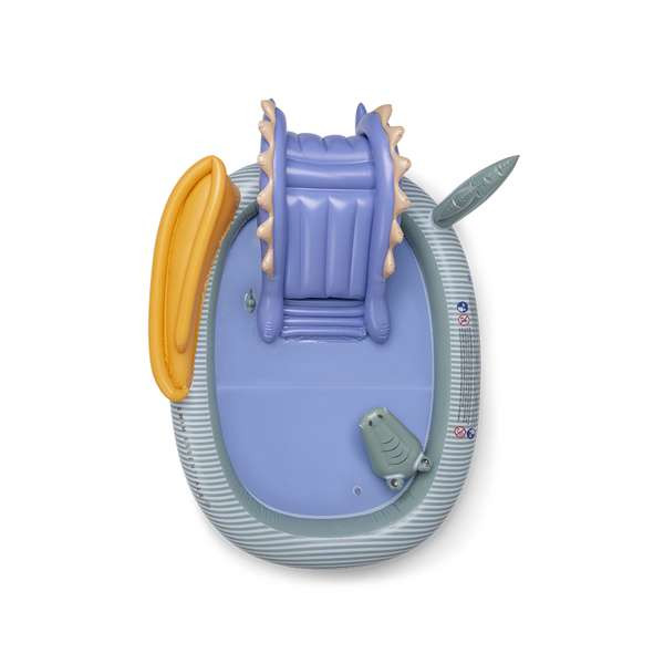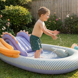 Nafukovací bazén so šmykľavkou Dino od značky Swim Essentials premení záhradu na malé vodné ihrisko. Vďaka veľkorysej veľkosti (cca 210 × 150 cm) ponúka priestor na čľapkanie, hry aj prvé „šmyky“ do osviežujúcej vody – ideálne počas horúcich dní doma aj na chate.Bazén je navrhnutý tak, aby deti bavilo nielen kúpanie, ale aj pohyb – súčasťou je malá šmykľavka, ktorá spríjemní hru počas slnečného počasia. Materiál z odolného PVC je pripravený na bežné letné používanie a po sezóne bazén jednoducho vyfúkneš a uskladníš.Prečo si vybrať tento detský bazén so šmykľavkou Vodné ihrisko v záhrade – bazén + šmykľavka v jednom Veľká plocha na hranie (cca 210 × 150 cm) – vhodné aj pre súrodencov Letný dino dizajn, ktorý deti okamžite zaujme Rýchle nafúknutie a skladovanie – praktické aj na dovolenku Odporúčaný vek: od 3 rokovTechnické parametre Typ: nafukovací detský bazén / hracie centrum so šmykľavkou Rozmer: cca 210 × 150 cm Objem: približne 200–230 l (podľa naplnenia) Materiál: PVC Vlastnosti: integrovaná šmykľavka, detský hrací dizajnDôležité bezpečnostné upozornenie Dieťa používa bazén vždy len pod nepretržitým dozorom dospelej osoby. Vhodné len do plytkej vody; nepoužívaj v blízkosti schodov, svahov ani tvrdých prekážok. Na drsný povrch (betón, štrk) vždy použi ochrannú podložku.