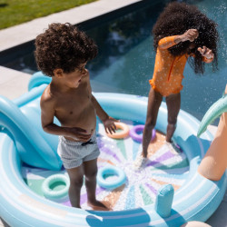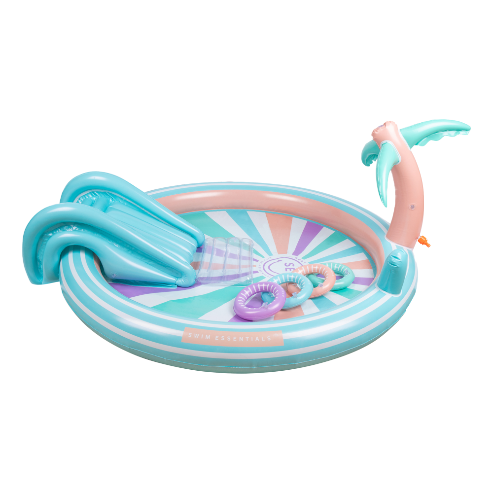 Detský nafukovací bazén so šmykľavkou od Swim Essentials v pastelových farbách sa stane zdrojom nekonečnej vodnej zábavy pre vaše deti. Je to skvelý nafukovací bazén aj vodné ihrisko na záhradu a napríklad aj na detskú oslavu. Je veľký 150 cm, má 7 nafukovacích komôr a zmestí sa doňho až 230 litrov vody. Pravé letné osvieženie zaistí rozstrekovač Bazén so šmykľavkou Duha však obsahuje aj rozstrekovač v podobe Palmy. Ten je možné napojiť na vašej záhradnej hadici s redukciou. Vďaka striekajúcej vode budú mať vaše deti túto vodnú zábavu ešte radšej. Nechýbajú ani ďalšie nafukovacie doplnky – 4 kolesá. Kvalitný nafukovací bazén so šmykľavkou bude pýchou vašej záhrady Prémiová holandská značka Swim Essentials sa pri všetkých svojich výrobkoch zameriava na vysokú kvalitu, funkčnosť a neopozeraný štýl. Aj nafukovací bazén so šmykľavkou Duha je preto vyrobený z odolného PVC. Vďaka tomu sú veľmi pevné a niečo vydržia. Značka taktiež každý rok prináša nové špičkové designy, na ktorých si dáva veľmi záležať. Balenie bazéna je vyrobené z recyklovaného kartónu a nájdete v ňom aj jeden set na opravu prípadných dier. Nechýba ani bezpečnostné testovanie hračiek EN-71.