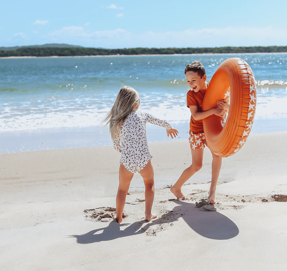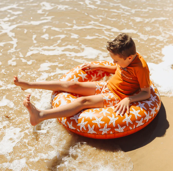 Prémiová holandská značka Swim Essentials sa pri všetkých svojich výrobkoch zameriava na vysokú kvalitu, funkčnosť a neopozeraný štýl. Aj tieto veľké nafukovacie kruhy na plávanie sú preto vyrobené z pevného a odolného PVC. Značka tiež každý rok prináša nové špičkové designy, na ktorých si dáva veľmi záležať a dôkazom je aj tento motív s morskými hviezdicami. Balenie nafukovacieho kruhu je vyrobené z recyklovaného kartónu a nájdete v ňom aj jeden set na opravu prípadných dier. Nechýba ani bezpečnostné testovanie hračiek EN-71.