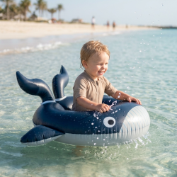 Nafukovacie koleso Veľryba 55 cm od značky Swim Essentials je štýlový letný doplnok, ktorý spríjemní čľapkanie v bazéne, pri jazere aj na dovolenke. Motív veľryby robia z kolesa obľúbený kúsok na vodné hry aj „instagramové“ fotky. Otvorený (split) tvar uľahčuje nastupovanie a vystupovanie – praktické najmä pri menších deťoch, ktoré sa chcú vo vode rýchlo striedať. Priemer 55 cm poskytuje dostatok priestoru na pohodlné plávanie, pričom koleso zostáva skladné a ľahko prenosné. Vďaka pevnej nafukovacej konštrukcii sa drží stabilne na hladine a je vhodné na bežné letné používanie. Koleso je určené na hranie a plávanie v plytkej vode – nie je záchranná pomôcka. Produkty Swim Essentials sú navrhované a testované podľa prísnych európskych požiadaviek; pri vybraných nafukovačkách sa uvádza aj testovanie podľa EN-71 a (podľa typu) EN-13138-3. Prečo si vybrať toto nafukovacie koleso? Priemer 55 cm – ideálny rozmer na bazén aj k moru. Max. zaťaženie do 50 kg a odporúčaný vek 3+ 1 vzduchová komora pre stabilnú plavnosť. Odolné PVC – pripravené na letnú sezónu. Opravná sada (repair patch) na drobné nehody (podľa balenia). Technické parametre. Model: 2025SE144 Značka: Swim Essentials Typ: nafukovacie plávacie koleso / kruh do vody. Priemer: 55 cm. Odporúčaný vek: 3+ . Max. zaťaženie: 50 kg. Konštrukcia: 1 komora. Tvar: otvorený (split) kruh – jednoduchšie nastupovanie. Dizajn: Veľryba. Ako používať koleso bezpečne Používaj len v plytkej vode a vždy pod nepretržitým dozorom dospelej osoby. Pred každým použitím skontroluj ventil a švy; pri nafukovaní nepreplňuj vzduchom. Chráň pred ostrými predmetmi a po kúpaní koleso opláchni a vysuš mimo priameho slnka. Dôležité upozornenie. Toto plávacie koleso nie je záchranná pomôcka ani záchranná vesta. Dieťa nesmie byť vo vode bez dozoru, ani keď používa plávaciu pomôcku.
