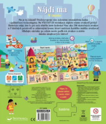 Nájdi ma - V mesteObjavujte na stránkach tejto úžasnej zvukovej knižky vyše 200 zvukov z mesta!Interaktívna zvuková knižka s krásnymi ilustráciami obsahuje vyše 200 zvukov a názvov v slovenčine zo siedmich rôznych prostredí v meste!Celé mesto na stránkach doslova ožije, hneď ako pri ilustráciách stlačíte vyznačené miesto. Táto kniha obsahuje skutočné zvukové prvky aj nahovorené názvy miest, vecí, pamiatok či budov. Kniha je teda pre malé deti taká zaujímavá a interaktívna, že nepotrebujú ani žiadneho dospelého, ktorý by im názvy musel predčítať! V knihe sa dozviete informácie a zaujímavosti o stavbách, vozidlách aj ľuďoch s rôznymi zamestnaniami, a dokonca viac ako 70 obrázkov môžete hľadať v režime "hry". Na nič teda nečakajte, poďte sa zoznámiť s mestom a objavujte, aké zvuky v ňom nájdete.