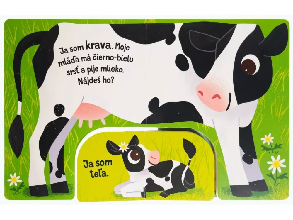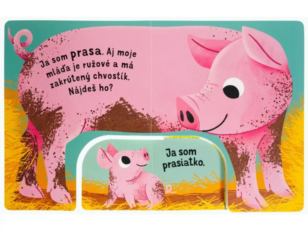 Originálne spracované leporelo spája dve knižky v rôznych veľkostiach a pozýva deti hľadať správne mláďatá zvierat na farme podľa krátkych popisov. Pevné stránky sú ideálne pre malé ručičky a pri hre si deti precvičia jemnú motoriku, naučia sa prvé slovíčka a zoznámia sa so zvieratami aj ich mláďatami.