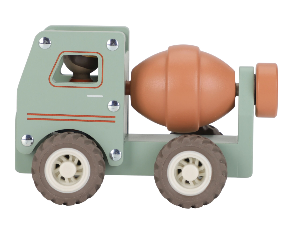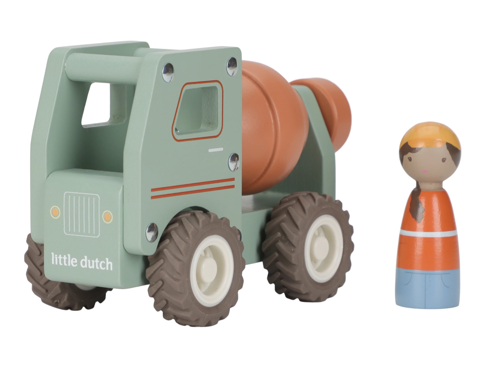 Súčasťou hračky je drevená figúrka stavbyvedúceho, ktorá dodá hre ešte viac zábavy a realizmu.Miešačku môžete kombinovať s ďalšími stavebnými vozidlami – napríklad s nakladačom, autožeriavom alebo sklápačkou – pre kompletné stavebné dobrodružstvo.