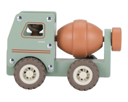 Miešať a stavať! Tento drevený miešač betónu je pripravený na prácu na stavbe. Pri jazde sa bubon miešačky otáča, takže hra vyzerá ako skutočná. Robustný nákladiak s gumovými pneumatikami zaisťuje hladkú a tichú jazdu.