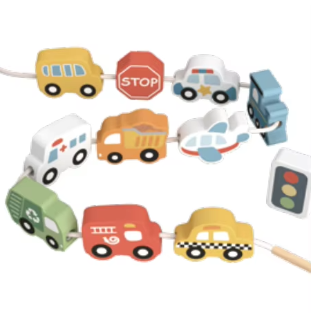 Navliekanie Doprava Veľké korálky pre najmenších v podobe dopravných vozidielSada korálikov pre deti Doprava od Tooky Toy je jedinečnou zábavnou aj vzdelávacou hračkou. Sada drevených korálikov obsahuje 12 dopravných prostriedkov a 1 bezpečnú drevenú ihlu so špagátom v priehľadnej prenosnej tube. Sada je skladná, takže ju pokojne môžete deťom zbaliť aj na cesty a je skvelá ako malý darček pre deti.Navliekanie korálikov podporuje rozvoj detí Vďaka sade drevených korálikov Doprava si deti pri navliekaní cvičia jemnú motoriku, trpezlivosť a koncentráciu. Veľké Drevené korálky dobre padnú do detskej ručičky. Deti sa ale tiež učia pomenovávať zvieratká, hrajú sa s nimi, alebo ich dokonca stavajú na seba ako balančnú hru. Drevené hračky Tooky Toy sú vyrobené s ohľadom na bezpečnosť detí a životné prostredie. Farby sú netoxické a zdravotne nezávadné. Hračka je vhodná pre deti od 2 rokov.