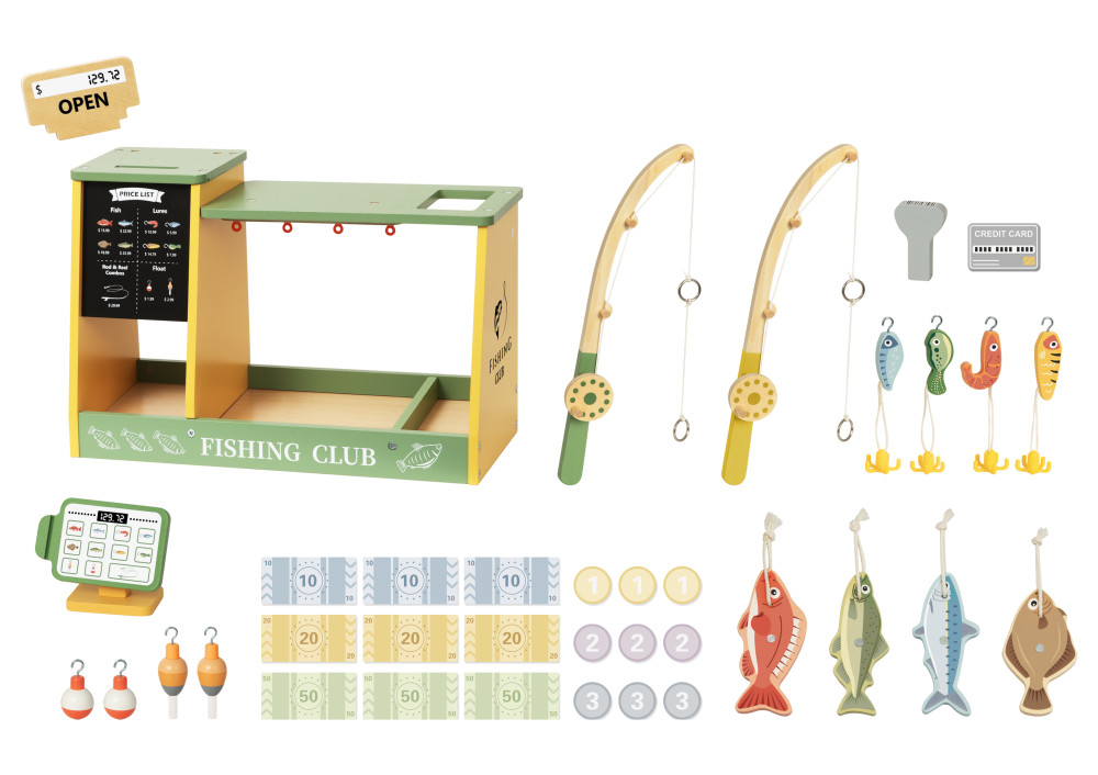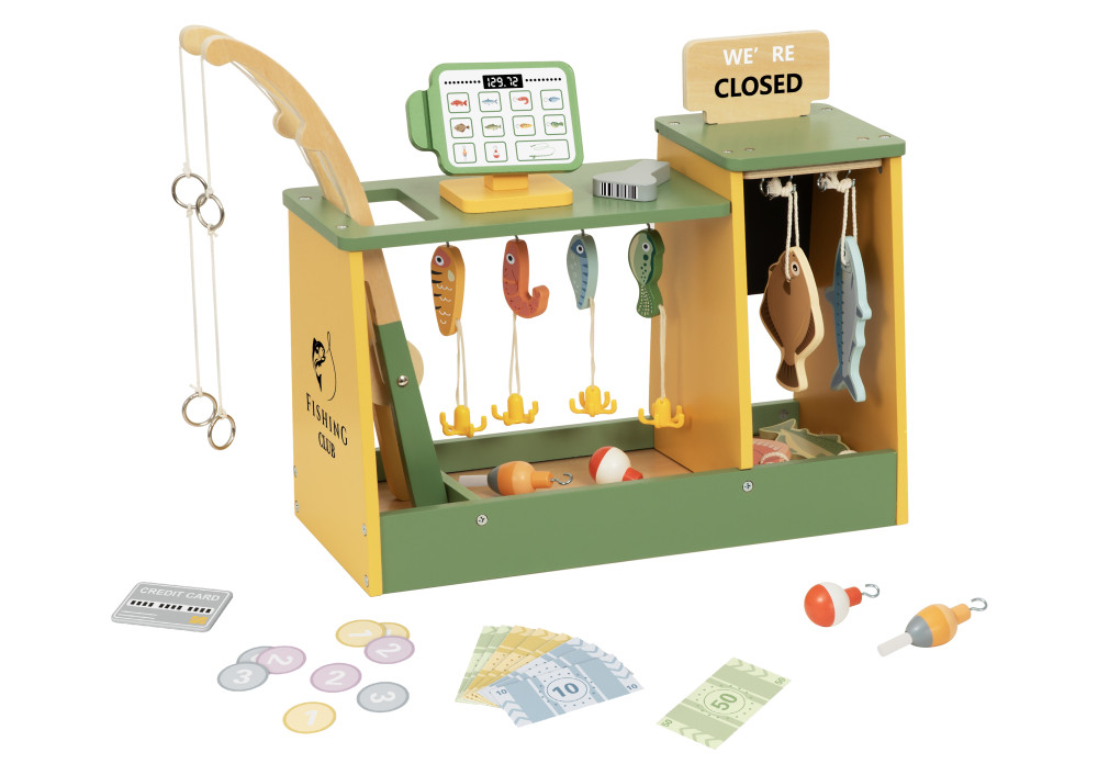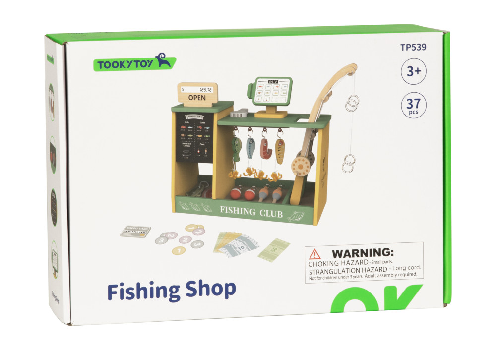 Obchod Rybárske potrebyDrevený obchodík pre malých rybárov a milovníkov vodyVitajte v rybárskom kráľovstve! S týmto dreveným setom Obchod Rybárske potreby od Tooky Toy sa deti prenesú do sveta mora, vôní a zábavy. Môžu sa zahrať na predajcov v rybárskom obchode alebo na rybárov, ktorí si pripravujú svoj denný úlovok. Deti sa pri hre s obchodom učia pomenúvať morské živočíchy, chápať princípy rybolovu a spoznávať, prečo je dôležité starať sa o prírodu.Zábava, ktorá učí a inšpirujebohaté príslušenstvo pre realistickú hru – rybky, udice, váha, pult a ďalšie doplnkydeti sa učia triediť úlovok, rozpoznávať farby a veľkostimožnosť hry na predavača, zákazníka alebo rybárarozvíja jemnú motoriku, koordináciu ruka–oko a logické myslenieučí spolupráci, komunikácii a ekologickému vnímaniuvšetky dieliky sú z kvalitného, hladko opracovaného dreva s netoxickými farbamiideálna hračka pre malých objaviteľov, ktorí milujú vodu, zvieratká a rolové hry