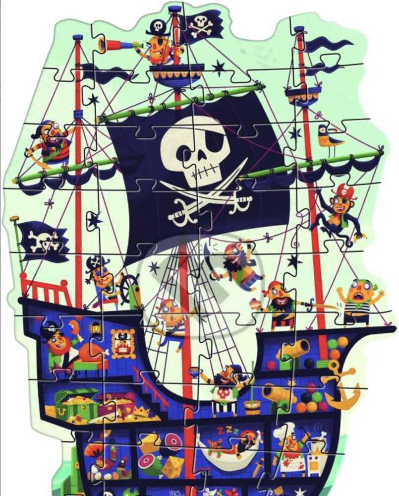 Tento pirátsky koráb je taký veľký, že sa naň zmestí hromada pirátov a vecí. Tri sťažne, tri plachty a päť podlaží v podpalubí. Puzzle znázorňuje prierez pirátskeho korábu, ktorý vezie okrem zásob, zbraní, pokladu a hnátov aj jednu zvláštnu vec – bicykel. Posádka korábu je početná, akčná a tak trochu uletená. Toto puzzle plné vtipných scén ťa tak skoro neomrzí.