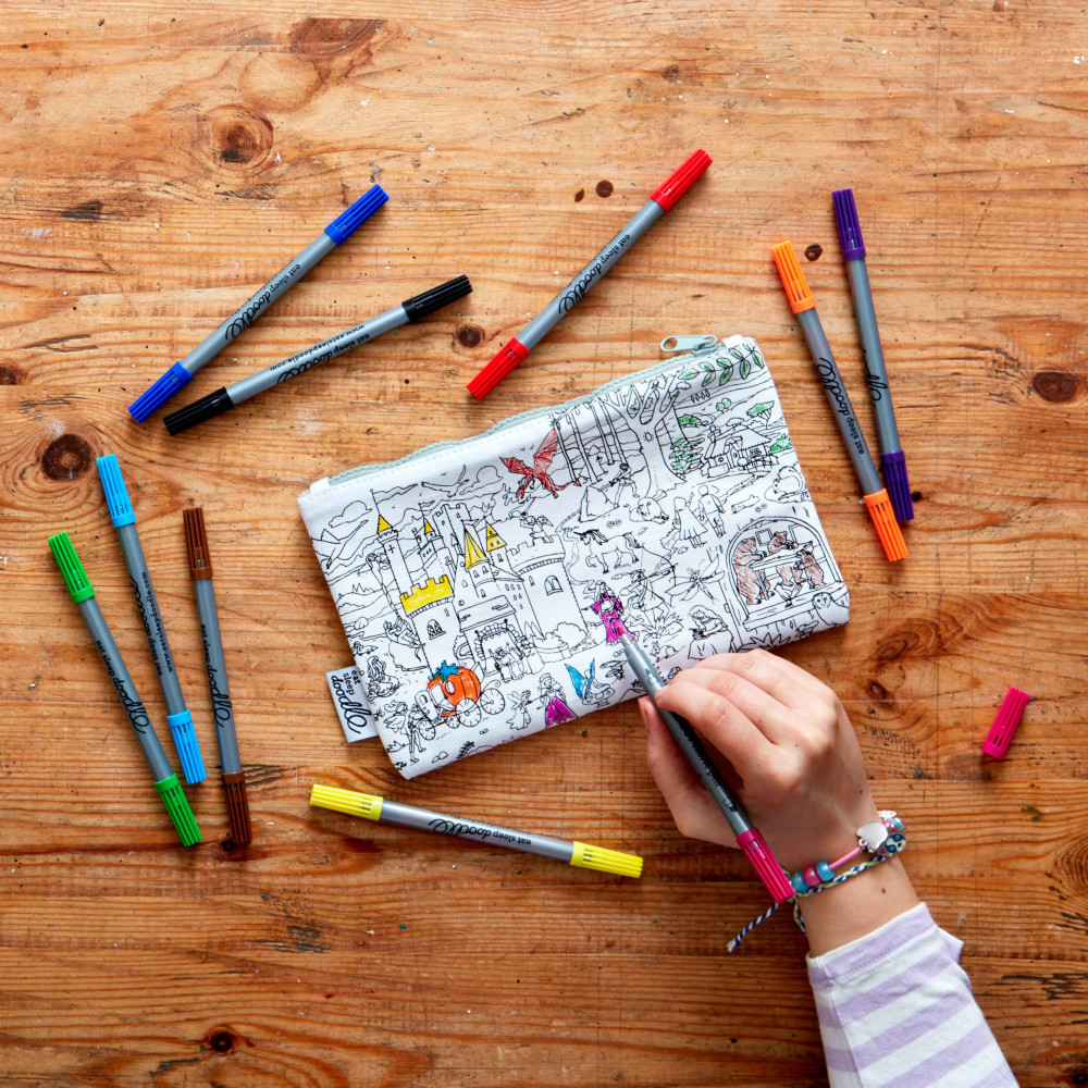 Peračník na vyfarbenie Rozprávky & Legendy je skvelý darček pre deti, ktoré milujú rozprávky a mýty! Tento peračník obsahuje balíček desiatich umývateľných fixiek, ktoré deťom umožnia vyfarbiť svoje obľúbené postavy zo sveta rozprávok – od princezien a drakov po rytierov a jednorožcov. Na druhej strane peračníka nájdu miesto na písanie vlastného príbehu, čo podporuje kreativitu a rozvoj písania. Po vypratí v práčke atrament úplne zmizne a peračník je pripravený na ďalšiu dávku zábavy. Tento rozprávkový peračník je ideálny darček na narodeniny, Vianoce alebo ako kreatívna zábava doma.