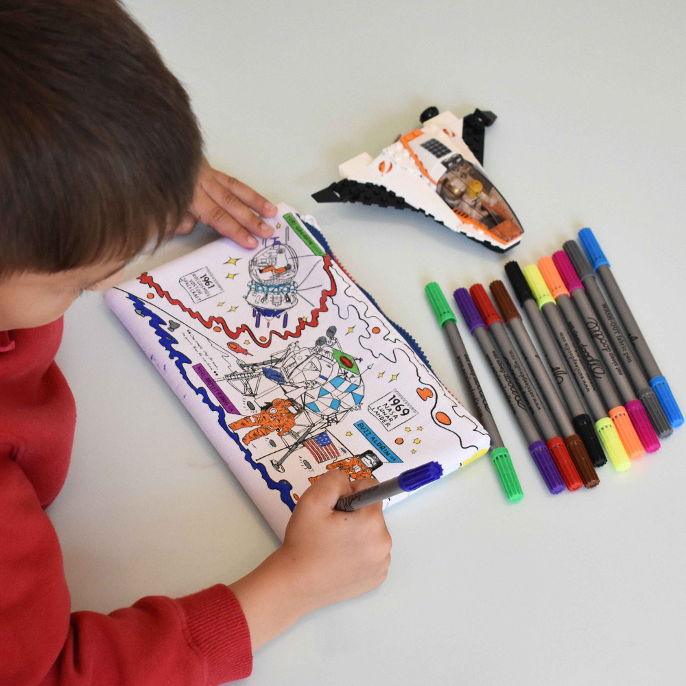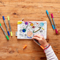 Peračník na vyfarbenie Space Explorer je ideálny darček pre deti, ktoré milujú vesmírne dobrodružstvá. Tento zábavný peračník umožňuje deťom objavovať a farbiť planéty, hviezdy, rakety, astronautov a historické pristátie na Mesiaci! Na jednej strane peračníka je zobrazený poradie planét v slnečnej sústave a na druhej strane historický obrázok pristátia na Mesiaci. Deti môžu používať priložené fixky a vytvárať svoj vlastný vesmírny svet! Keď sú pripravené na ďalšie vesmírne dobrodružstvo, stačí peračník hodiť do práčky a atrament zmizne, pripravený na ďalšie objavovanie vesmíru. Tento kreatívny a vzdelávací peračník je skvelým darčekom na začiatok školy alebo na narodeniny pre malých vesmírnych prieskumníkov!
