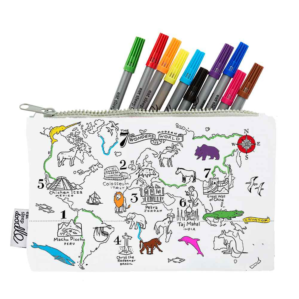 Peračník na vyfarbenie World map je skvelý darček pre deti, ktoré sa zaujímajú o geografiu a zvieratá! Tento peračník obsahuje set desiatich umývateľných fixiek, ktoré umožňujú deťom vyfarbiť si svetovú mapu so všetkými krajinami a 7 divmi sveta. Na druhej strane peračníka nájdu obľúbené zvieratá a morských živočíchov, ktoré môžu tiež vyfarbiť. Keď je čas na nové dobrodružstvo, jednoducho stačí peračník hodiť do práčky, atrament zmizne a je pripravený na ďalšie farbenie. Tento peračník je ideálny ako darček na narodeniny, Vianoce alebo na začiatok školy.