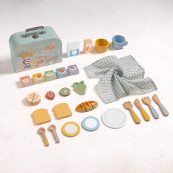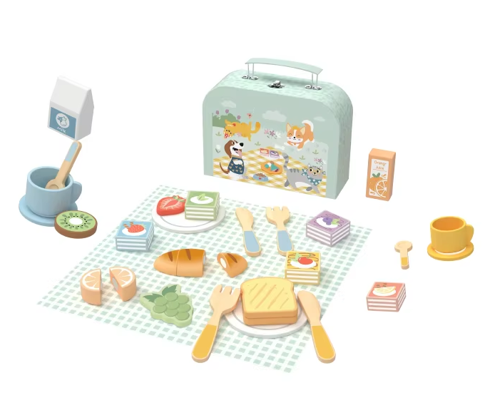 Set podporuje kreativitu, fantáziu a rozvoj sociálnych zručností – deti sa učia pripravovať jedlo, prestierať a pohostit kamarátov či plyšových hostí. Vďaka kompaktnému kufríku si môžu všetky doplnky jednoducho uložiť a vziať so sebou na návštevu, do parku alebo na dovolenku.Sada obsahuje všetko potrebné pre piknik