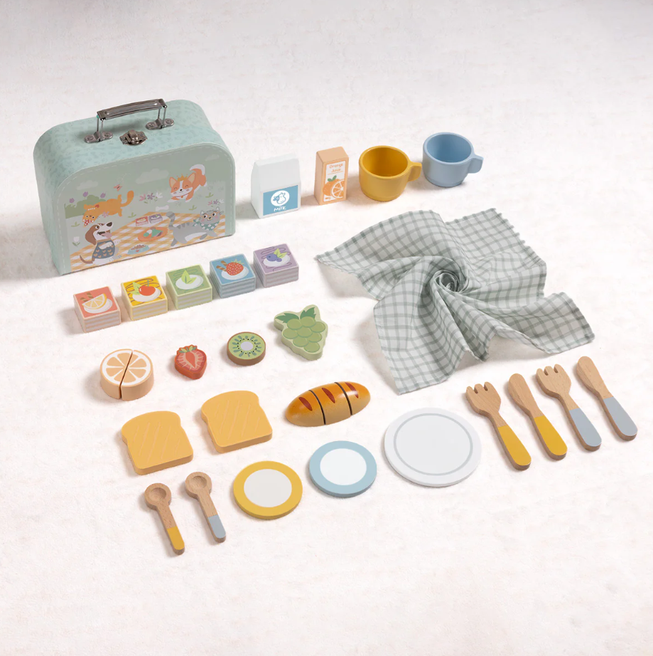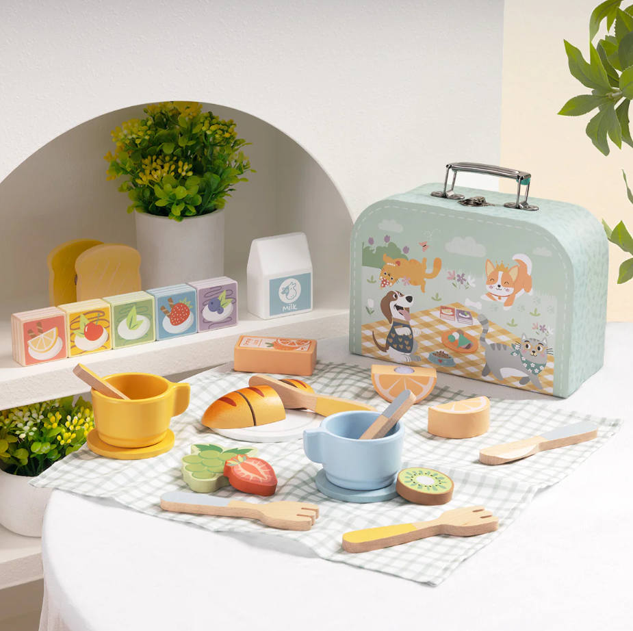 Piknik set v kufríkuPozvite hostí a piknik sa môže začaťPripravte sa na dokonalý piknik kdekoľvek a kedykoľvek! Tento roztomilý piknikový set v praktickom kufríku je ideálny pre deti, ktoré milujú rolové hry a objavovanie sveta okolo seba.