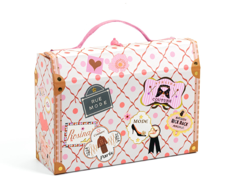 Objavte kufríkové puzdro Tinou od DJECO z kolekcie LOVELY PAPER. Tento dizajnový a ľahko prenosný „kufrík“ je vyrobený z pevného kartónu a disponuje unikátnym zapínaním s drevenou guľôčkou a gumičkou.