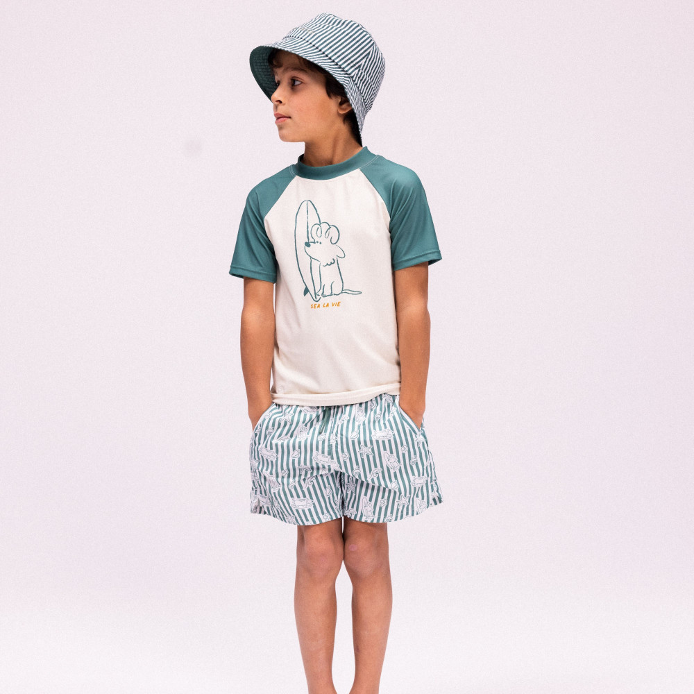 Detské plavkové boxerky Surf Dogs od značky Swim Essentials sú pohodlné detské boxerkové plavky určené na letné dni pri bazéne, na pláži aj pri mori. Vďaka ochrane UPF 50+ pomáhajú chrániť citlivú detskú pokožku pred slnečným žiarením počas plávania, hier vo vode aj pobytu na slnku.Boxerkový strih je vhodný pre deti, ktoré majú rady priliehavejší a športovejší typ plaviek. Plavky sú vyrobené z pružného a odolného strečového materiálu, ktorý sa dobre prispôsobí pohybu a poskytuje pohodlie pri aktívnom nosení počas dňa. Motív Surf Dogs pôsobí hravo, energicky a letne, takže plavky vyniknú pri vode a ľahko sa kombinujú s ďalšími kúskami z letnej výbavy, napríklad s UV tričkom alebo klobúčikom.Pri plavkových boxerkách Swim Essentials rodičia oceňujú najmä komfort pri pohybe vo vode, praktický strih a UV ochranu pri pravidelnom letnom kúpaní.Prečo si vybrať detské plavkové boxerky Swim Essentials Surf Dogs UPF 50+ – vysoká ochrana pred slnečným žiarením boxerkový strih – pohodlné a priliehavé plavky na aktívny pohyb pružný a odolný strečový materiál – príjemné nosenie a voľnosť pohybu vhodné k bazénu aj k moru – praktické plavky na leto a dovolenku motív Surf Dogs – výrazný letný dizajn