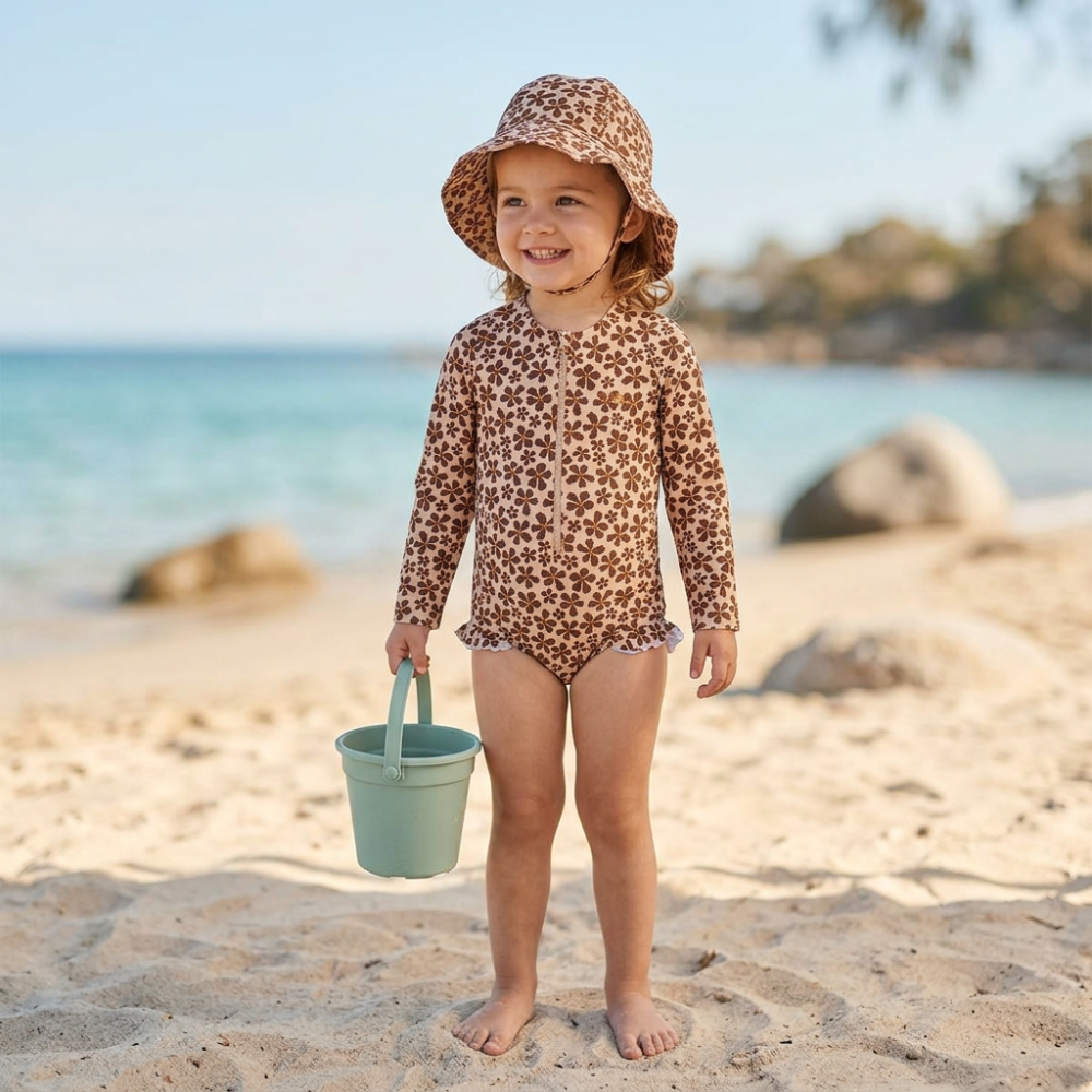 Plážový klobúk s UPF 50+ Wild Flower Plážový klobúk Wild Flower s UPF 50+: ľahký letný tieň pre tvár aj uši – pre bábätká a detiPlážový klobúk Wild Flower s UPF 50+ je praktický doplnok na leto, keď sú deti veľa vonku – pri vode, na ihrisku aj na výletoch. Ochrana UPF 50+ pomáha chrániť hlavu pred priamym slnkom a vďaka výraznému kvetinovému motívu zároveň krásne doplní letný outfit.Klobúk je navrhnutý tak, aby sa dal nosiť pohodlne aj dlhšie. Širší okraj vytvára tieň pre tvár a uši, čo oceníte pri prechádzkach, hre v piesku aj pri oddychu v kočíku. Výhodou je viac veľkostí podľa obvodu hlavy – keď klobúk sedí správne, lepšie drží a dieťa sa cíti komfortne pri pohybe aj počas oddychu.Prečo sa hodí na leto UPF 50+ – vysoká ochrana pred UV žiarením Detský plážový klobúk – k vode, na dovolenku aj na výlety Širší okraj – viac tieňa pre tvár a uši Wild Flower motív – veselý kvetinový dizajn, ktorý vynikne Viac veľkostí – jednoduchší výber podľa obvodu hlavyVeľkosti (obvod hlavy) Vek Obvod hlavy (cm) 0–12 mesiacov44–47 1–2 roky48–51 2–4 roky52–54 4–8 rokov55–57