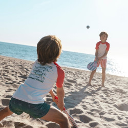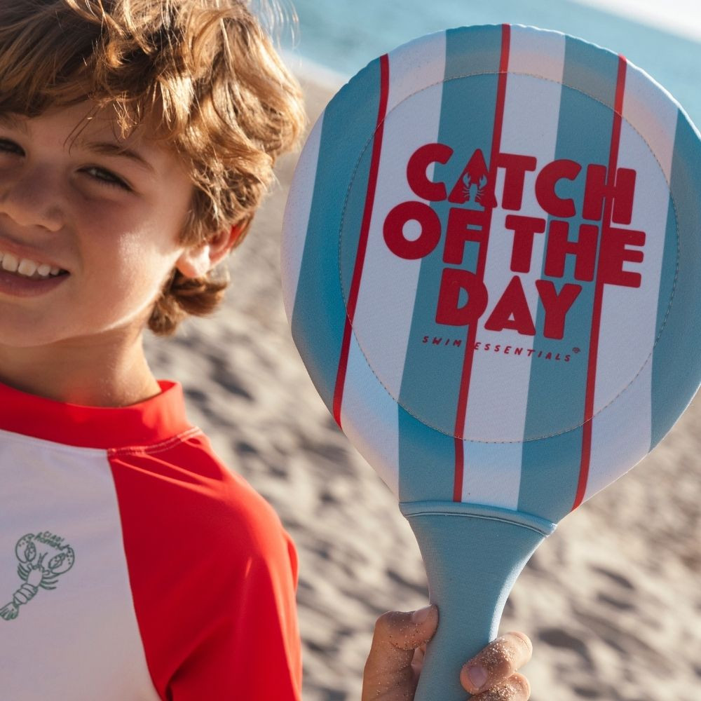 Plážový tenis Catch of the Day od značky Swim Essentials je štýlový set na aktívne letné hry na pláži, pri bazéne aj v záhrade. Sada je ideálna na spoločnú zábavu detí aj rodiny a podporuje pohyb, koordináciu a rýchle reakcie počas hry na čerstvom vzduchu.V balení nájdeš 2 rakety na plážový tenis a 2 loptičky, takže môžete začať hrať hneď po rozbalení. Rakety sú vyrobené z neoprénu, vďaka čomu sú príjemné na používanie a vhodné na letné rekreačné hranie.Dizajn Catch of the Day krásne zapadne do letnej výbavy Swim Essentials a osloví deti aj rodičov, ktorí majú radi funkčné produkty s nápaditým vzhľadom. Set sa hodí na dovolenku pri mori, víkend na kúpalisku aj na bežné hry vonku počas leta.Rýchly prehľad značka: Swim Essentials dizajn: Catch of the Day typ produktu: set na plážový tenis obsah balenia: 2 rakety + 2 loptičky materiál rakiet: neoprén prevedenie: obojstranná potlač rakiet, 2 farebné loptičky využitie: pláž, záhrada, park, letné outdoor hry veková kategória: orientačne od 6 rokov. Prečo si ho obľúbite rýchla a zábavná hra pre dvoch hráčov, podporuje aktívny pohyb a koordináciu, praktická sada pripravená na hru hneď po rozbalení, štýlový letný dizajn Catch of the Day.