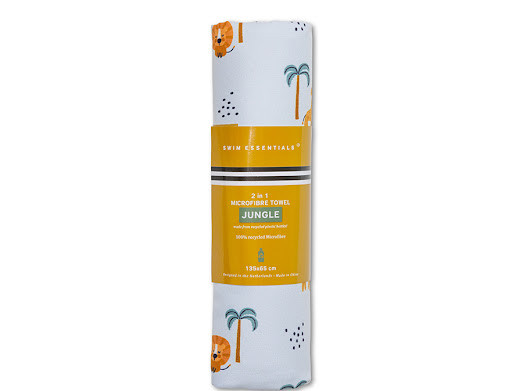 Rýchloschnúci plážový uterák od Swim Essentials s motívmi džungle si deti hneď zamilujú! Rady sa do neho zababušia hneď, ako vylezú z vody. Pri veľkosti 135 x 65 cm si naň tiež pohodlne ľahnú. Uterák Swim Essentials je ľahký a skladný. Je vyrobený zo 100% recyklovaného mikrovlákna, je ľahký, váži len 150 g, a skladný. Vydrží až 450 vypraní. V rovnakom dizajne môžete deťom kúpiť aj veľkú plážovú osušku 180 x 90. Uterák pre deti je vhodný na všedný deň aj dovolenku. Prémiová holandská značka Swim Essentials sa pri všetkých svojich výrobkoch zameriava na vysokú kvalitu, funkčnosť a neopozeraný dizajn. To všetko v sebe spája aj tento ľahký plážový uterák pre deti. Stane sa tak neoddeliteľnou súčasťou vašej výbavy k vode.