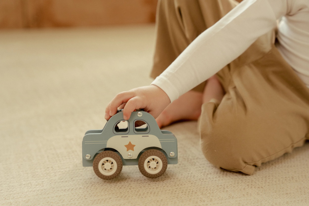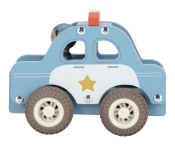 Stala sa nehoda alebo krádež? Drevené policajné auto sviští ulicami mesta priamo na miesto činu! S odvážnym policajtom za volantom a gumovými pneumatikami pre tichý a plynulý pohyb je pripravené chrániť a pomáhať.