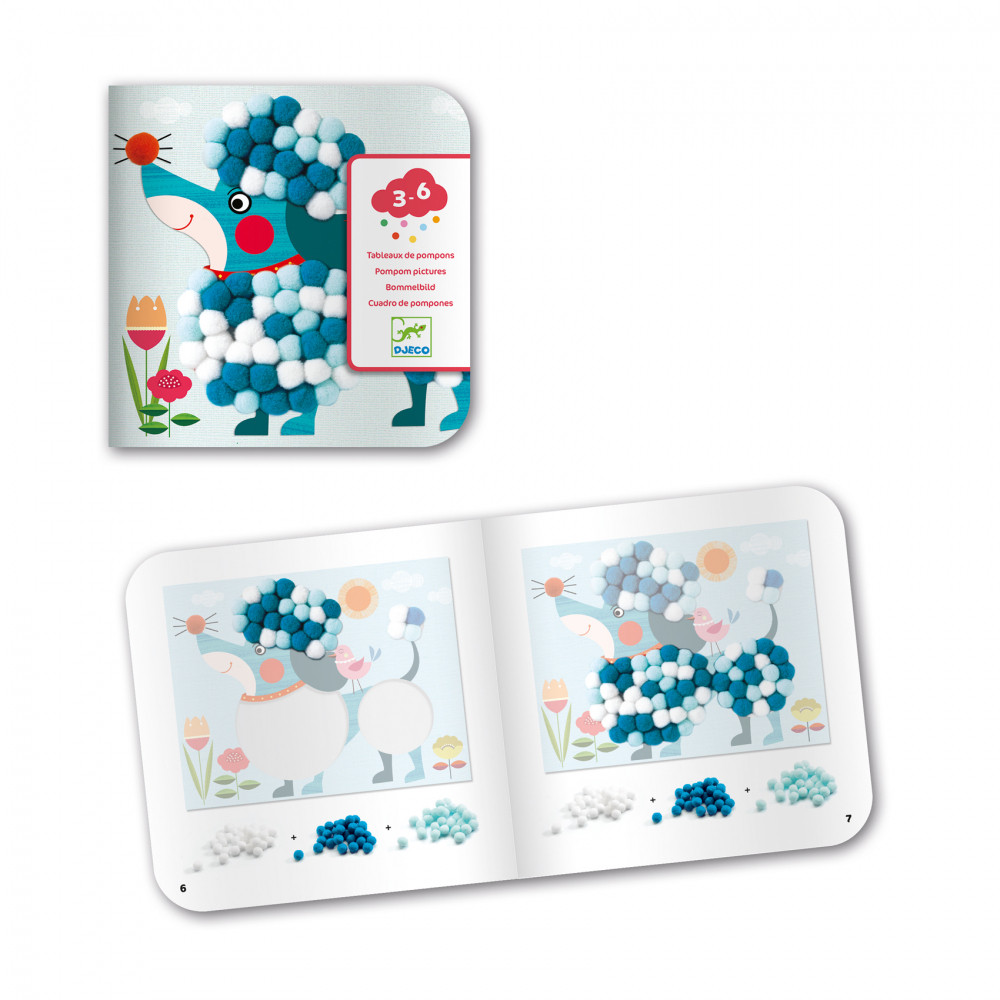 Vyber sa na prechádzku s 3 rozkošnými mäkučkými psíkmi! Zábavná aktivita na princípe koláže.Tvorivá sada pre malých umelcov podporuje kreativitu a jemnú motoriku. Čisté lepenie bez lepidla: prázdne miesta na obrázkoch majú lepivý povrch a brmbolce stačí na ne pritlačiť. Obrázkový návod podporí samostatnú prácu. Obsah: 3 hrubé kartónové obrázky psíkov, 345 farebných brmbolcov, obrázkový návod. Rozmery obrázkov: 28 x 21 cm.