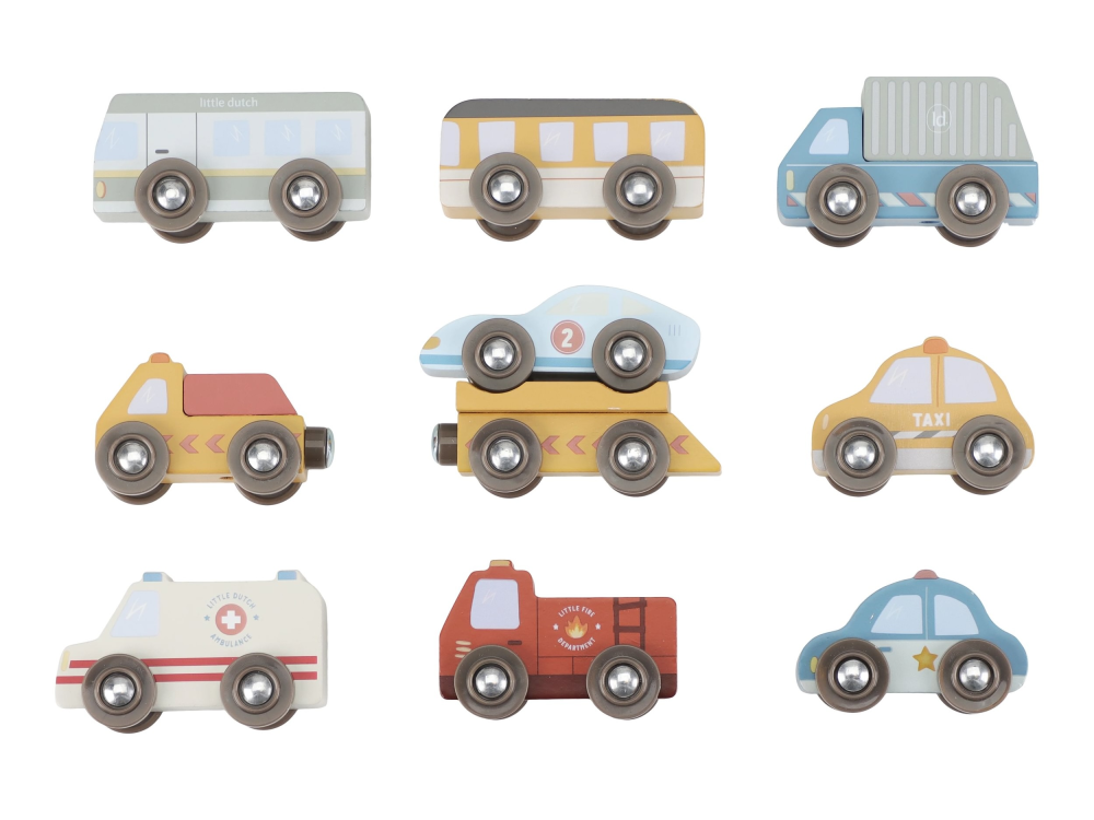 Autíčka sú kompatibilné s vláčikodráhou Little Dutch a jej rozširujúcimi sadami. Deti si tak môžu vytvoriť vlastné mesto plné akcie, príbehov a pohybu. Hra podporuje predstavivosť, jemnú motoriku a samostatné rozprávanie.