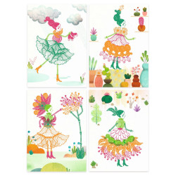 Sada pečiatok Kvetinové dievča je kreatívna aktivita, v ktorej si deti skladajú postavičky postupným pečiatkovaním jednotlivých častí.Kombinujú tvár, účes, šaty a vzory, menia farby a dopĺňajú detaily, aby vznikali stále nové kvetinové outfity.Súčasťou sú aj kartičky so scénami, ktoré si deti dozdobia podľa fantázie a vytvoria vlastné príbehy.Rýchly prehľad odporúčaný vek: 5–8 rokov rozvíja: jemnú motoriku, predstavivosť, cit pre detaily, sústredenie v balení: kartičky na dotvorenie, pečiatky, 4 farby atramentu, návod krok za krokom. Prečo si ju deti zamilujú „mix & match“ zábava – z rovnakých dielikov vznikne množstvo rôznych postáv pečiatky sú hrubšie a dobre uchopiteľné – pohodlné pre detské ruky ľahko zmývateľné atramentové podložky – tvorenie je praktickejšie aj doma hotové obrázky sa dajú ďalej dopĺňať – napríklad dokresliť alebo vyfarbiť. Ako sa s tým hrá? Vyber si kartičku so scénou (alebo čistý papier). Postupne „poskladaj“ postavu: pečiatkuj tvár, vlasy, oblečenie a vzory. Striedaj 4 farby atramentu a vytvor kvetinové kombinácie. Dozdob pozadie a pridaj detaily podľa vlastnej fantázie.Obsah balenia 16× kartička na dotvorenie (cca 15 × 21 cm) 14× pečiatka 4× atramentová poduška (oranžová, ružová/fuchsiová, svetlozelená, tmavozelená) 1× farebný návod krok za krokom. Technické parametre vek: 5–8 rokov rozmery kartičiek: cca 15 × 21 cm rozmery balenia: približne 16,5 × 23 × 4 cm vlastnosť atramentu: ľahko zmývateľný