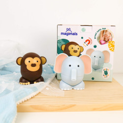 Skladacie magnetické zvieratká Safari Magimals zabavia už deti okolo 1 roku. Balenie obsahuje dve rozkošné zvieratká zo savany: opicu a slona. Každé je zložené z 3 častí: nožičiek, telíčka a hlavičky z mäkkého materiálu. Týchto 6 častí je možné medzi sebou navzájom kombinovať, čo predĺži detskú hru a sústredenie. Zvieratká sa dajú jednoducho skladať vďaka silným a bezpečným magnetom, je možné ich stláčať aj hrýzť. Zložené zvieratko deti využijú aj ako zábavnú hojdaciu hračku, ktorá sa nikdy neprevráti, alebo ako mäkkú hračku do vane.Roztomilá didaktická hračka do izbičky aj do vane Vďaka magnetickej skladačke Magimals Safari sa deti stanú malými prieskumníkmi. Figúrky totiž stimulujú predstavivosť a podporujú kognitívny rozvoj. Dokonale si vďaka nim precvičia hmat, úchop aj logické myslenie. Budú kreatívne kombinovať a objavovať svet zvierat. Magimals sú jedinečné kreatívne hračky pre bábätká, ktoré sú vyrobené z jemného, bezpečného, netoxického a umývateľného materiálu odolného voči detským zúbkom. Magnetická skladačka je vhodná ako darček k 1. narodeninám.