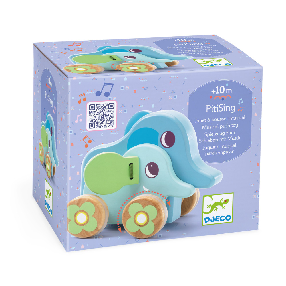 Sloníky na tlačenie s melódiou PitiSing motivujú deti k pohybu a chôdzi. Pri tlačení sa hračky rozbehnú a ozve sa jemná melódia, ktorá podporí radosť z objavovania. Skvelé na rozvoj hrubej motoriky a koordinácie.Rýchly prehľad efekt: tlačenie + melódia odporúčaný vek: od 10 mesiacov rozvíja: hrubú motoriku, koordináciu, rytmus téma: sloníky. Prečo si ich deti obľúbia melódia motivuje k ďalšiemu „krôčiku“ hračka sa dá jednoducho tlačiť po podlahe podporuje aktívnu hru a pohyb. Technické parametre typ: hračka na tlačenie s melódiou použitie: pohybová hra