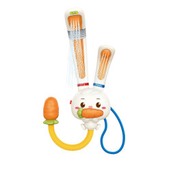 Sprcha do vane ZajačikRoztomilý zajačik spríjemní umývanieSprcha do vane Zajačik premení obyčajné kúpanie na hravú chvíľu, na ktorú sa deti budú tešiť každý večer. Základňa so zajačikom sa pomocou prísaviek pripevní na stenu vane alebo obklad a ponorné čerpadlo vo vode zabezpečí cirkuláciu vody – po stlačení tlačidla sa z jednej alebo oboch „uškatých“ hlavíc spustí jemný prúd vody. Deti môžu prúd využívať na polievanie hračiek, vedierok či vlastných rúčok a pritom sa prirodzene učia, že sprchovanie môže byť zábava. Ohybná hadica a tvar hlavice umožňujú nasmerovať vodu presne tam, kde je potrebné, takže oplachovanie šampónu z vlasov je pohodlnejšie a menej nepríjemné. Voda sa berie priamo z vane, takže nie je nutné púšťať ďalšiu vodu z kohútika, čo šetrí vodu aj čas. Sprcha do vane Zajačik je vyrobená z kvalitného plastu s hladkými hranami, odporúčaná pre deti od 3 rokov a je skvelým darčekom pre všetky deti, ktoré milujú vodu, zvieratká a interaktívne hračky do kúpeľa.