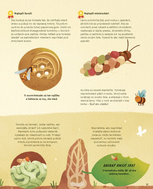 Tajný život HMYZ Neuveriteľné príbehy z ríše hmyzuVedeli ste, že wetapunga patrí medzi najťažšie chrobáky na svete a že trpasličie osičky sú oveľa nebezpečnejšie, než by napovedalo ich milé meno? Kniha Tajný život hmyzu vás zavedie do fascinujúceho sveta drobných, no nesmierne dôležitých tvorov, ktorí obývajú každý kút našej planéty. Objavíte magické príbehy o hmyze z celého sveta a spoznáte množstvo rozmanitých druhov – od pracovitých mravcov spriadačov až po Goliáša kráľovského, jedného z najväčších hmyzích obrov. Tento pútavý sprievodca vám priblíži nielen neuveriteľné schopnosti hmyzu, ale aj jeho nenahraditeľnú úlohu v prírode. Dozviete sa, prečo sú chrobáky a iný hmyz pre planétu životne dôležité, ako pomáhajú udržiavať rovnováhu v prírode a prečo je ich ochrana taká dôležitá. Tajný život hmyzu je kniha plná zaujímavostí, objavov a prekvapení, ktorá očarí malých aj veľkých čitateľov.
