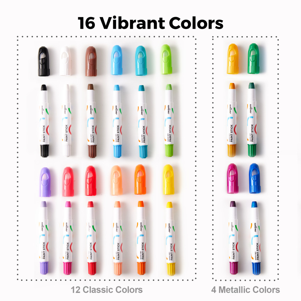 Temperové farby v tyčinke Umývateľné 16 ksUmývateľné temperové farby v tyčinke pre deti - Rýchloschnúce, netoxické, kreatívne sety na maľovanieDoprajte deťom maľovanie, ktoré je rovnako zábavné ako jednoduché! Temperové farby v tyčinke prinášajú možnosť tvoriť bez vody, štetca či palety – stačí odskrutkovať, otočiť a kresliť. Farby sa nanášajú hladko ako pastelky, no na papieri zanechávajú efekt tempery. Navyše rýchlo schnú, takže sa nerozmazávajú ani nelepia na ruky.Prečo si tieto tyčinkové farby obľúbite?16 intenzívnych farieb, ktoré krásne kryjúrýchloschnúce – tvorba bez čakania a rozmazaniabezpečné a netoxické zloženie vhodné aj pre malé detiumývateľné z pokožky aj väčšiny povrchovčisté tvorenie – bez štetca, vody a kvapiek farbyuniverzálne použitie: papier, kartón, plátno, drevo, kameň a ďalšieKde zažiaria najviac?kreatívne projekty doma, v škôlke aj školerozvoj jemnej motoriky, predstavivosti a farebného cíteniarýchle tvorenie bez škvŕn, chaosu a upratovania