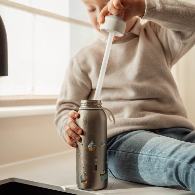 Termofľaša je súčasťou dizajnovej kolekcie Little Dutch Námornícky záliv, v ktorej nájdete jedálenské doplnky pre detské stolovanie, posteľnú bielizeň, dekoratívne doplnky do detskej izby aj drevené a plyšové hračky.
