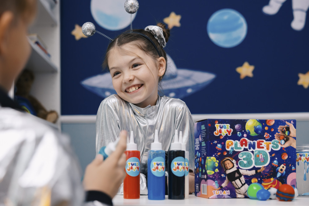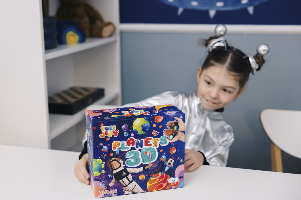 Tubi Jelly Kreatívny set Planéty Vytvorte si 3D planéty Tubi Jelly set je jedinečná tvorivá sada pre milovníkov vesmíru. Sada obsahuje 5 farebných gélov a dve veľkosti guľových odmerok na tvorbu planét. Vďaka kombinácii tekutého gélu a aktivátora vzniknú trojrozmerné modely planét. Tie potom deti môžu umiestniť do nádoby naplnenej kryštálmi vody a vznikne úžasná galaxia.Sada obsahuje:tekutý gél 150 ml v 5 farbách,2 x odmerka rôznej veľkosti,aktivátor,vodné kryštály,nádobu.Ocenená hračka roka 2021 V roku 2021 bol produkt Tubi Jelly ocenený titulom Hračka roka v kategórii kreatívne hračky. Vyskúšajte ho aj vy.Všetky produkty značky Tuban sú vyrobené z kvalitných materiálov, sú bezpečné a netoxické, čo znamená, že sa nemusíte obávať o zdravie svojich detí a môžete mať istotu, že ich čakajú len tie najlepšie zážitky.