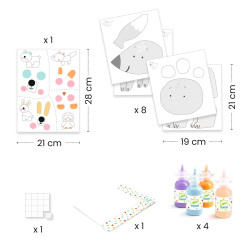 Ufúľaná zábava Maľovanie s prstami Kreatívna tvorenie pre najmenších Detské ruky zažijú farebnú explóziu – namáčanie prstov, rozmazávanie farby a tvorba veselých zvieratiek! Stačí vložiť ruku do farby a sledovať, ako sa tvar mení na farebný umelecký výtvor. Potom pospájajú dieliky a pridajú nálepky na skrášlenie.Ako to celé funguje? Rodičovská pomoc – dospelí vylúpnu predrezané tvary a nanesú farbuDeti sa „zafúľajú“ farbou – jednoduché rozmazávanie podľa siluetyPoskladajú časti zvieratiek a ozdobia ich samolepkamiSada obsahuje: 8 predrezaných kartónových hárkov so zvieratkami1 hárok špeciálnych nálepiek4 fľaštičky prstových farieb1 ochranná podložkaIlustrovaný návod na jednoduché vytvorenie 4 zvieratiekVýhody, ktoré potešia rodičov aj deti: Vhodné už od 18 mesiacov Podpora jemnej motoriky a rozpoznávania tvarovKreatívny úvod do maľby bez štetca – ide o zábavu, nie pravidláObsahuje robustný kartón s FSC® certifikátom, šetrný k prírode Súčasťou balenia je ochranná podložka – čisté prostredie, hravé ruky