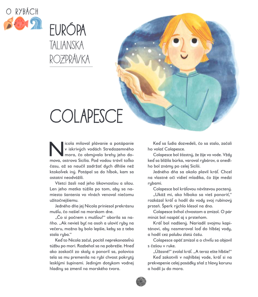 Veľká kniha podmorských rozprávok zo všetkých kútov sveta je nádherná bohato ilustrovaná kniha plná magických príbehov, mýtov a legiend inšpirovaných vodou. Čitateľov zavedie do sveta potôčikov, riek, jazier aj nekonečných oceánov, kde sa rodia fascinujúce príbehy z rôznych kultúr. Na stránkach tejto knihy ožívajú morské panny, oceánski bohovia, magické ryby aj majestátne draky. Spolu vytvárajú pestrú zbierku rozprávok, ktoré odhaľujú tajomstvá prírody, vody a dávnych tradícií. Kniha obsahuje 50 príbehov z celého sveta, ktoré vysvetľujú vznik rôznych prírodných javov a legendárnych miest. .Zistíte napríklad: ako poloboh Maui vytiahol ostrov z morského dna prečo je more slané ako vznikol ostrov Nová Guinea prečo rieky tečú a nikdy sa nezastavia. Každý príbeh je doplnený krásnymi ilustráciami, ktoré pomáhajú deťom ešte viac sa ponoriť do sveta fantázie. Táto jedinečná kniha je ideálna pre deti, ktoré milujú rozprávky, legendy a dobrodružné príbehy z rôznych kultúr sveta.