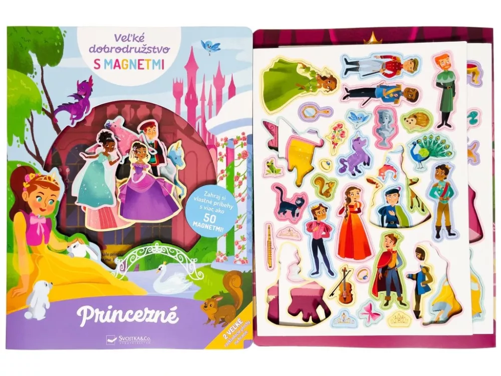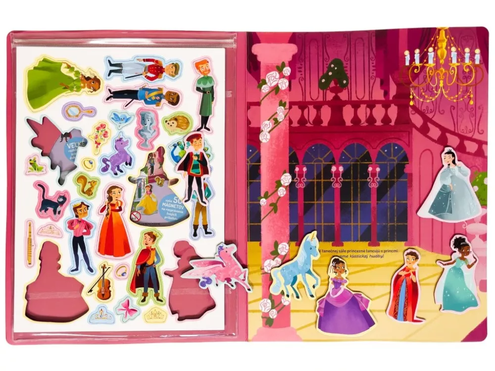 Veľké dobrodružstvo s magnetmi PrinceznéVydaj sa do rozprávkového sveta princezien a princov s touto rozkladacou magnetickou knihou!Veľká magnetická kniha plná princezien, plesov a kúzelných scén. Tvor si vlastné príbehy s viac ako 50 magnetmi! Po rozložení meria 300 × 920 mm a obsahuje dve veľké scény na dopĺňanie viac ako 50 farebnými magnetmi. Vytvor si vlastné príbehy v zámockej záhrade plnej kúzelných bytostí alebo v tanečnej sále, kde sa koná slávnostný ples. Pri hre s magnetmi si deti rozvíjajú jemnú motoriku, predstavivosť i slovnú zásobu. Ideálny darček pre malých milovníkov rozprávok a kráľovských dobrodružstiev.
