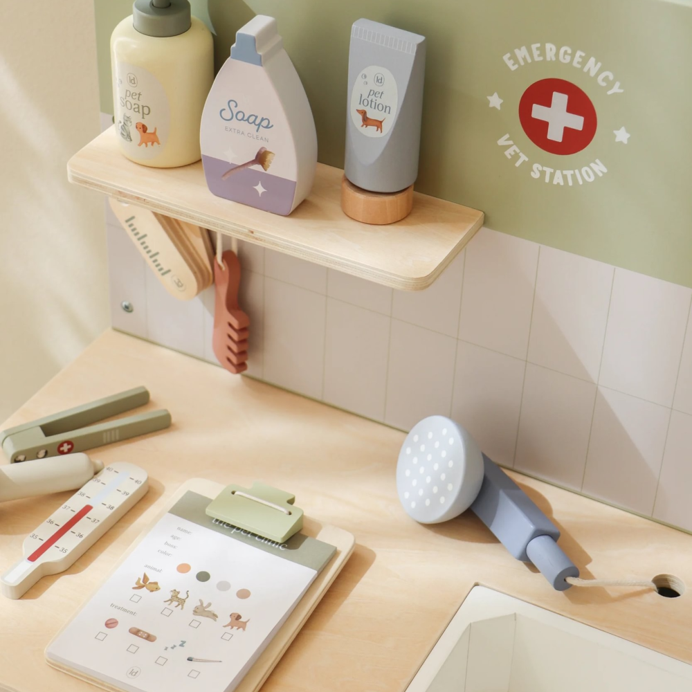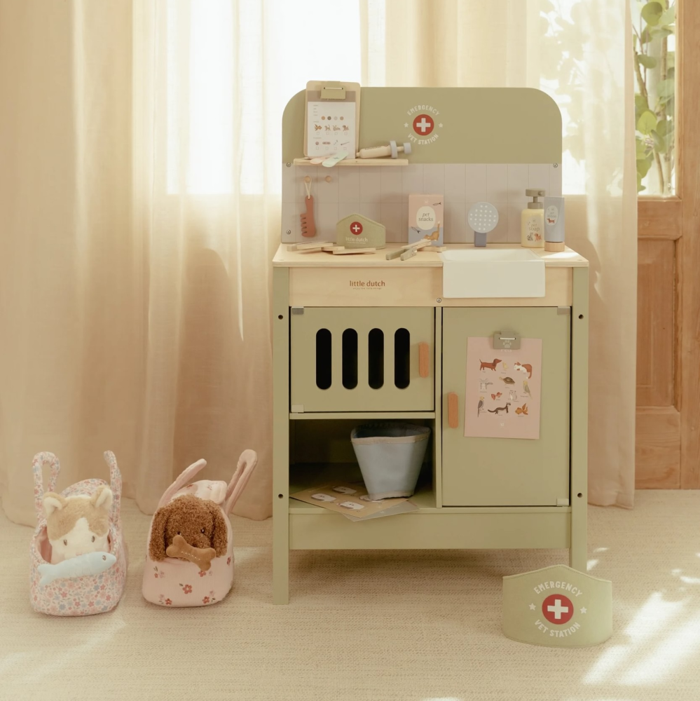 Drevená veterinárna ordinácia Little Dutch je skvelým darčekom pre deti, ktoré milujú zvieratká a starostlivosť o ne. Vďaka realistickým doplnkom sa malí ošetrovatelia ľahko ponoria do sveta starostlivosti o chorých miláčikov. Pripravte sa na množstvo príbehov zo života plyšových zvieratiek a nekonečné hodiny zábavného hrania!