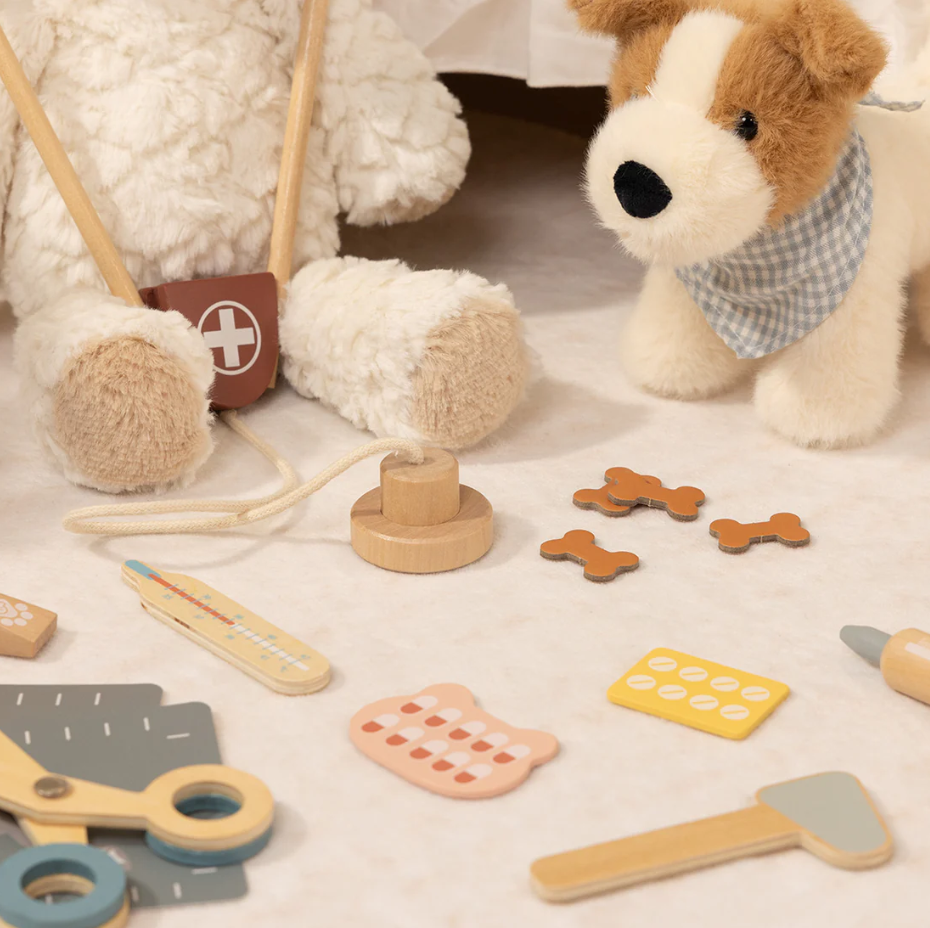 Hra na veterinára, podobne ako iné hry na hranie rolí, pomáha deťom rozvíjať ich schopnosti, ako sú sociálne zručnosti, komunikácia, rozprávanie príbehov, predstavivosť a ďalšie. Drevené hračky pre deti Tooky Toy sú vyrobené z kvalitných materiálov s ohľadom na životné prostredie. Celá súprava je teda veľmi bezpečná a netoxická.