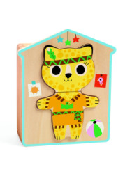 Vkladacie puzzle Mačky Poskladajte si milú mačičku Dieliky dreveného puzzle sú uložené v drevenej škatuli v tvare domčeka. Posuvný vrchnák škatule slúži zároveň ako podložka pre skladanie zvieracích tvárí. Cieľom je zložiť ucelenú tvárPodložka je univerzálna, dieliky sa dajú ľubovoľne zamieňať, z čoho môžu vzniknúť zaujímavé kombinácie – pokojne nechajte dieťaťu voľnú ruku.Obsah balenia• 6 x puzzle po 3 dielikyRozmery puzzle 11,6 x 14,1 x 5,2 cm
