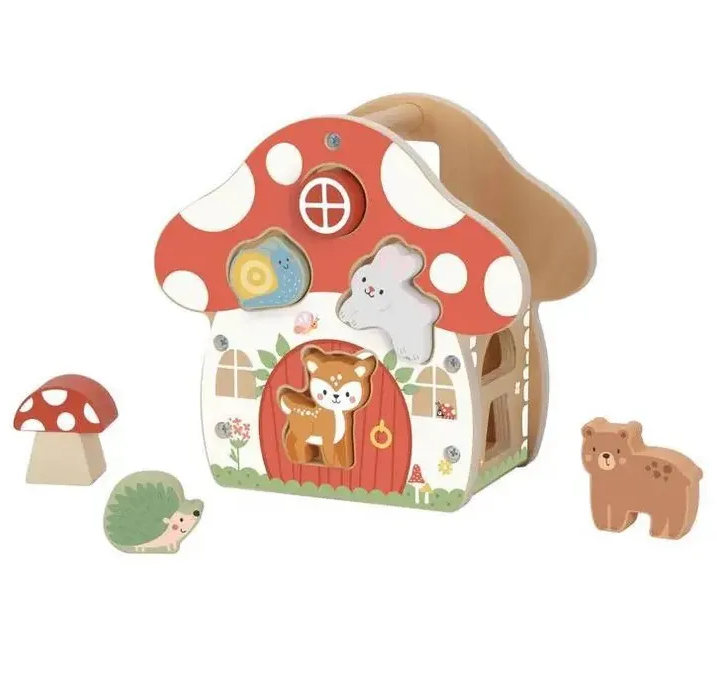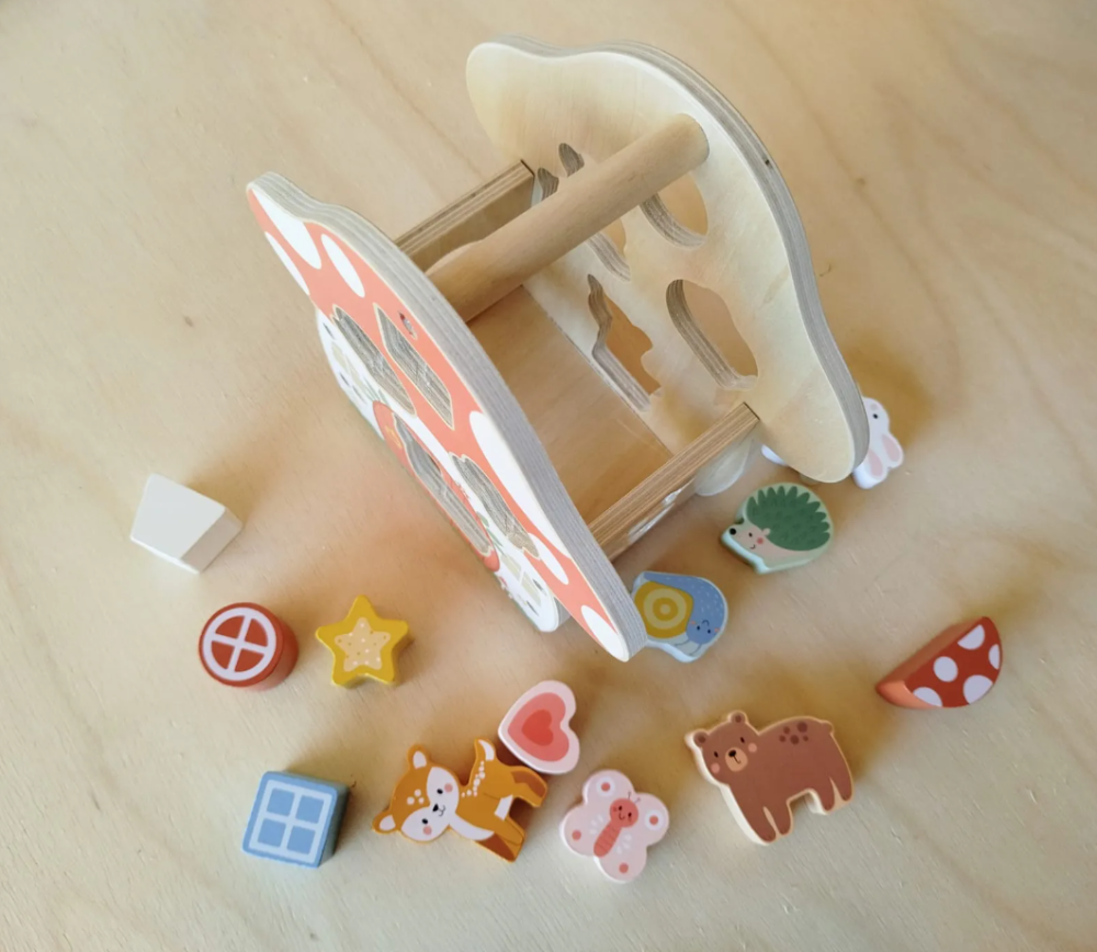 Vkladačka Tvary DomčekDrevená vkladačka Tvary Domček – učenie hrou pre najmenšíchObjavte kúzelnú drevenú vkladačku v tvare domčeka, ktorá v sebe spája zábavu, učenie a rozvoj detských schopností. Tento krásny domček s motívom huby obsahuje 12 farebných tvarov, ktoré deti vkladajú do správnych otvorov, čím si precvičujú logické myslenie, jemnú motoriku a koordináciu ruka–oko.
